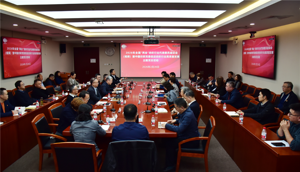 2月28日,2026全国“两会”纺织行业代表委员座谈会(视频)暨中国纺联党委促进纺织行业高质量发展主题党日活动在北京中国纺织工业联合会办公地召开。本次会议以线上线下相结合的方式举行,旨在贯彻落实党的二十届四中全会和中央经济工作会议精神,推动“十五五”规划战略部署在纺织行业落地落实,研究讨论2026年全国“两会”有关提案议案建议。
